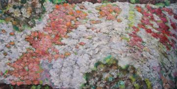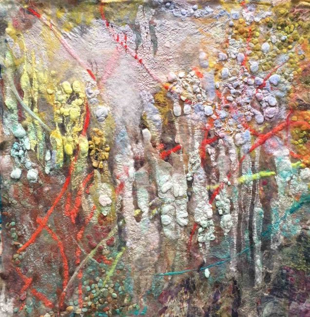 - Coral Reef. 92X92cm. Hand dyed silk on painted canvas.