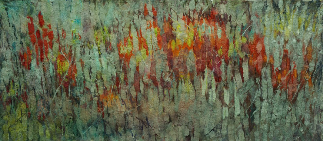 - Seasons #2. 90X180 cm. Hand dyed silk on painted canvas.