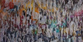 - Syncopation. 100X150 cm. Hand dyed silk on painted canvas.