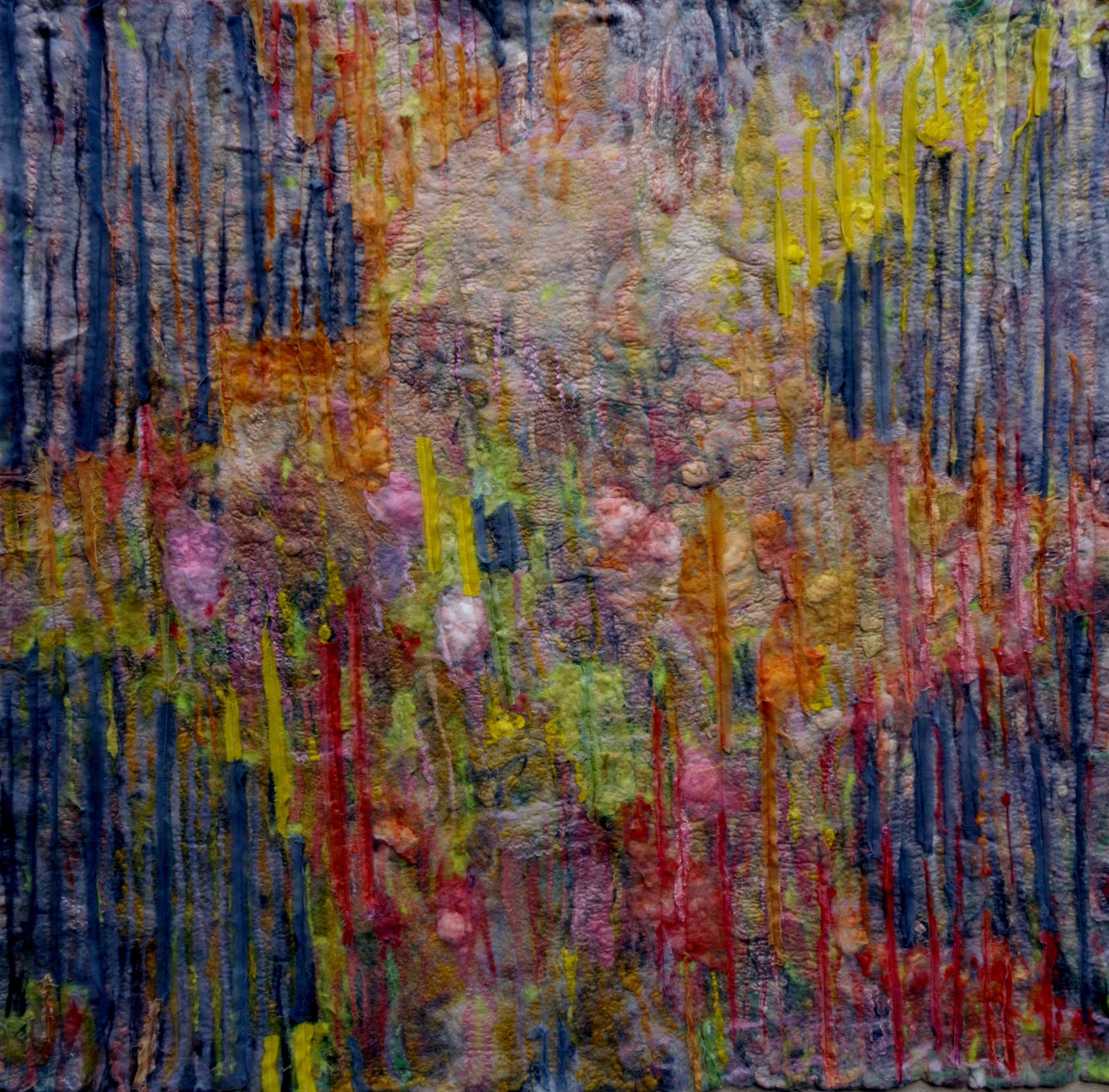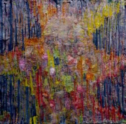 - Rainy Day. 106X106 cm. Hand dyed silk on painted canvas.