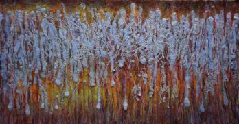 - Obsession #1. 90X180 cm. hand dyed silk on painted canvas.